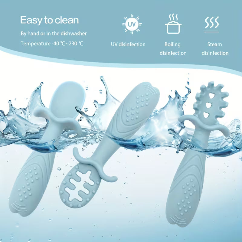 3pcs Feeding Utensils, Three Styles, Food Spoon, Chewable Silicone Spoon, Self-feeding Set, Training Spoon, Soft Head Silicone Spoon, 100% Food Grade Silicone, BPA-free